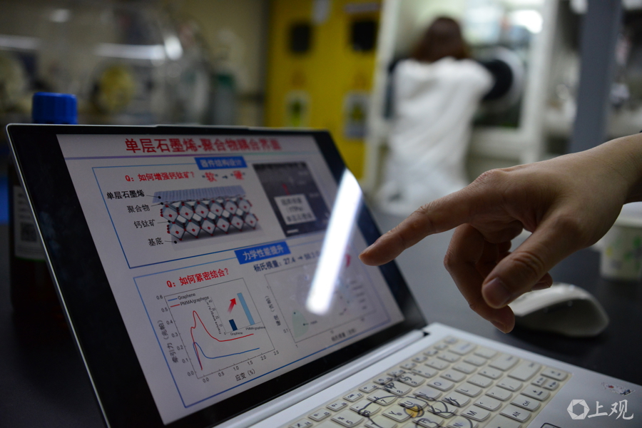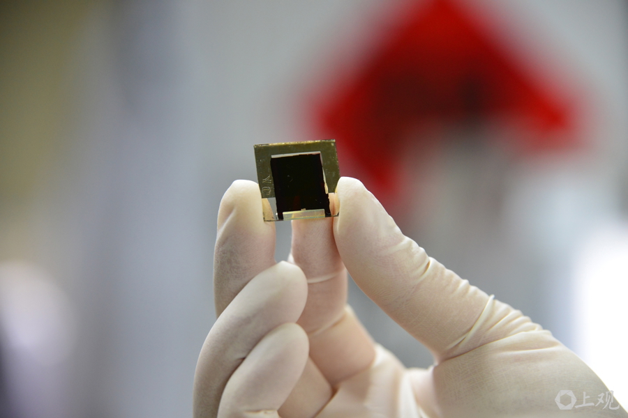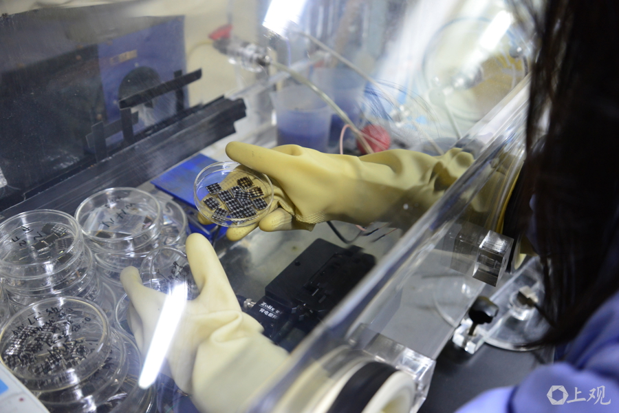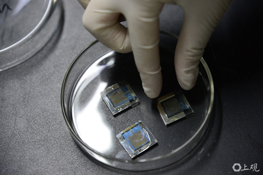 经过多次尝试,华理团队发现,可以利用与塑料相近的“聚甲基丙烯酸甲酯(PMMA)”聚合物,通过界面耦联方式,将单层整片石墨烯组装到钙钛矿薄膜表面,从而实现两者的高均匀度、多功能性集成。由此,一种新型的太阳钙钛矿电池器件形成了。