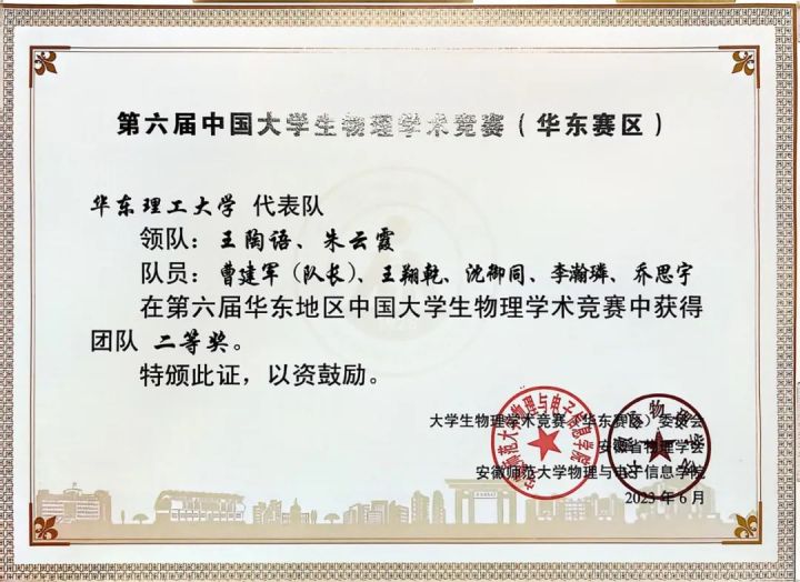 为将理论知识运用于实践,曹建军坚持以赛促学,获得了全国大学生物理学术竞赛(华东)二等奖和全国大学生数学竞赛二等奖(上海)。