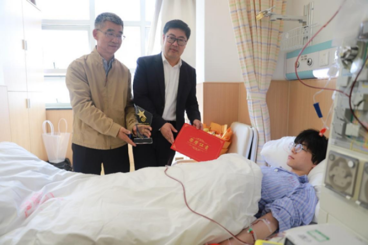 捐献当天,上海市副市长、上海市红十字会会长陈宇剑,市红十字会副会长刘光雯,徐汇区副区长、徐汇区红十字会会长罗华品,华理党委副书记沈海涛、学工部部长崔姗姗、副部长万胤婕,华理信息学院党委书记侍洪波、党委副书记许浩等依次进入采集室,看望慰问陈焕东,并向他送去了温暖和关怀。
