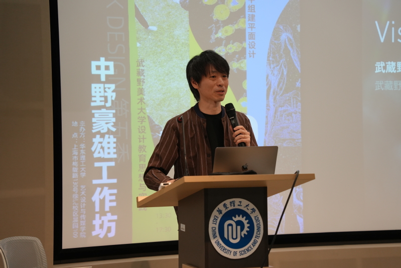 3月27日上午,中野豪雄作了“从编辑思考出发做设计”主题讲座。通过分享职业生涯中的代表作品,中野豪雄分享了设计中的创意构思与实现路径,并探讨了信息感知与统合思维在平面设计中的运用。