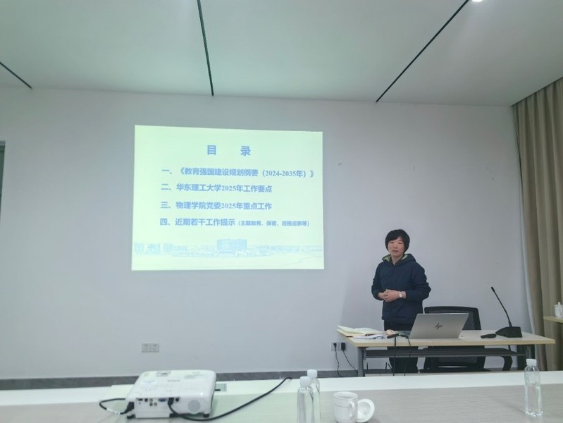 会上,校发展规划处处长赵玲应邀作了题为“贯彻落实第十二次党代会精神,构建特色凸显的一流学科体系”的专题辅导报告。赵玲介绍了教育强国建设的背景与要求,详细阐释了校第十二次党代会提出的“三步走”发展目标、“四化”战略、“两新两大”发展布局和十项重点举措。重点围绕学科布局优化提升,结合学院现状分析了物理学科发展的机遇和挑战,并给出系统谋划布局、夯实学科基础、深化交叉融合、提升内生动力等建设性建议。