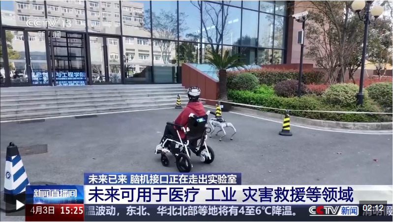 在灾害救援方面,救援人员可以通过脑电信号控制四足机器人进入危险区域执行搜救任务。华东理工大学信息科学与工程学院研究生 刘力菲:比如说在火灾现场,比较复杂的地形环境进行相应的勘探以及火灾检测之类,对于人类来说比较繁重以及危险的任务都可以交给它来进行。