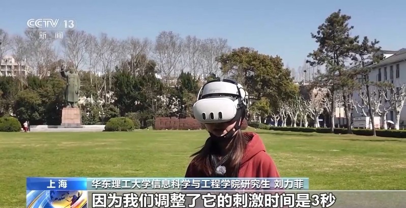 华东理工大学信息科学与工程学院研究生 刘力菲:它是非常灵敏的,因为我们调整刺激的时间是3秒,它对我意图的分析会比较精准。
