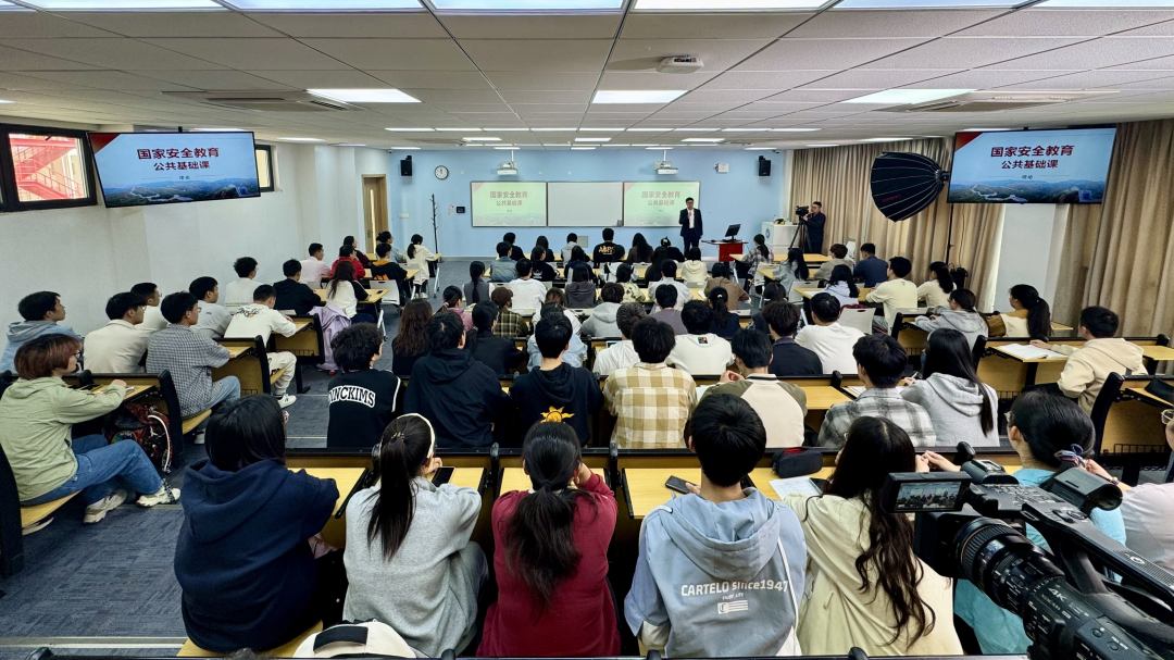 4 月 11 日,校党委副书记沈海涛系统阐述了总体国家安全观的科学内涵与重点领域,解读了大学生国家安全教育的战略意义,强调在统筹发展与安全大局中需强化底线思维、增强风险辨识力与责任担当。