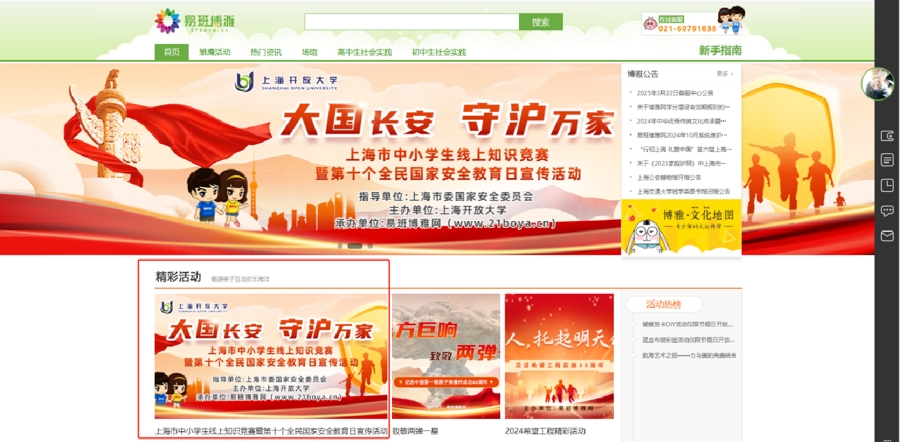 不仅进社区,作为“功能性、平台型”新型高校的上海开放大学(上海国家安全宣传教育研究中心),发挥市、区、街镇、居(村)委学习点四级办学体系优势,也让国家安全宣传教育进网络,依托易班大学与易班博雅网两大平台,组织实施国家安全知识网络竞赛活动,还让国家安全宣传教育进家庭,依托“上海家长学校”微信公众号开展系列图文推送及主题作品征集活动,甚至让国家安全宣传教育进入老年大学课堂。