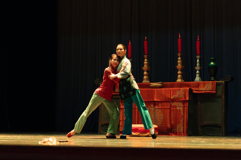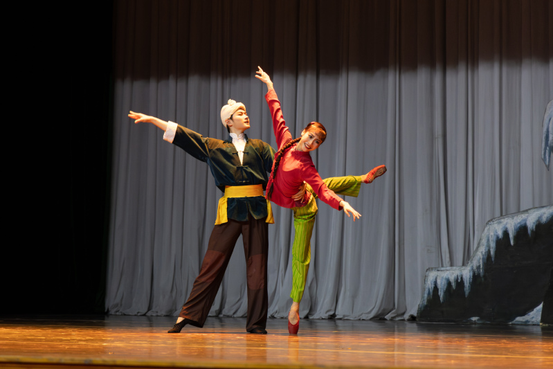 此次演出精选剧中“杨白劳家”“黄家”“芦苇荡边”“荒山野林”四个场景,再现了《北风吹》《窗花舞》《黄世仁逼债》《喜儿藏身芦苇丛》经典片段,在保留民族舞剧精髓的基础上,融入现代芭蕾的编创手法。舞者们用足尖的刚柔并济,将喜儿的坚韧、大春的果敢、黄世仁的狡诈演绎得淋漓尽致。