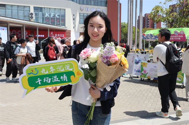 在南樑印社-丝网印摊位,一刷一印间,墨色流淌,方寸之间尽显匠心。学生们在指导下亲手制作丝网印刷作品,将传统技艺与现代创意完美融合。指尖翻飞,彩线缠绕的手作绒花,一朵朵栩栩如生的绒花在手中绽放,仿佛将春天的柔美定格。扎染小铺最是那道蓝白动人心。布料在染料中浸染,每一件作品都因独特的纹路而成为孤品,吸引了许多学生一试身手。