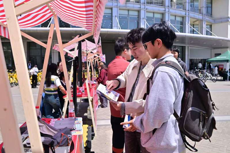 中午12时, “思政V课堂”成果路演展示区吸引了大批师生驻足。活动以“V影思辨·展映风华”为主题,集中展示了“思政V课堂”的优秀作品。“思政V课堂”启动实施三年,覆盖2022-2024级三个年级,16000余人次参与,累计完成12000多个Vlog作品,实践选题涵盖“重走信仰之路”“感悟发展成就”“品味文化魅力”“走进社会建设”“见证绿色发展”“上海五个中心建设”等大类。通过“行走的思政课”“思考的思政课”“我拍的思政课”,引导学生走出校门、深入基层、深入群众、深入实际,在社会实践中学以致用、知行合一。