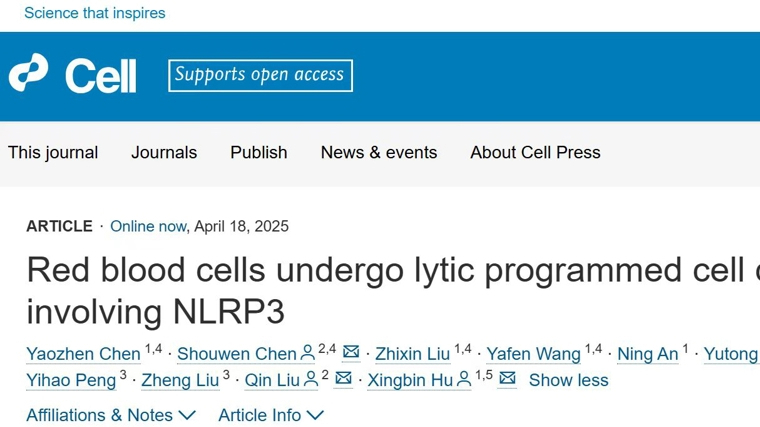 原本应该“寿终正寝”的“氧气快递员”红细胞,却纷纷意外死亡,引发的溶血性疾病,轻则导致疲劳、贫血,重则引发器官衰竭,原因何在?针对这一问题,华东理工大学刘琴教授团队联合空军军医大学附属西京医院胡兴斌副教授团队,揭示了一种红细胞程序性死亡的新机制。北京时间4月18日,国际期刊《细胞》发表了这一研究成果。