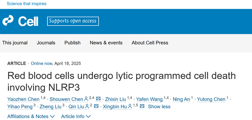 原本应该“寿终正寝”的“氧气快递员”红细胞,却纷纷意外死亡,引发的溶血性疾病,轻则导致疲劳、贫血,重则引发器官衰竭,原因何在?针对这一问题,华东理工大学刘琴教授团队联合空军军医大学附属西京医院胡兴斌副教授团队,揭示了一种红细胞程序性死亡的新机制。北京时间4月18日,国际期刊《细胞》发表了这一研究成果。