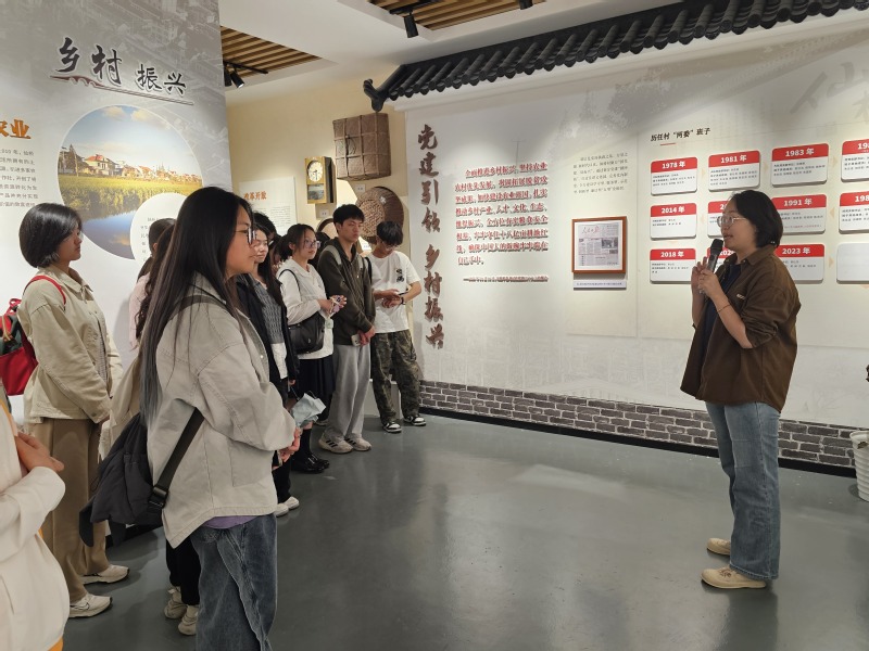 在竖新镇仙桥村,学员们在村史馆认真聆听仙桥村乡村振兴发展之路的介绍,感受仙桥村坚持农业农村优先发展理念,增强服务“三农”工作的责任感与使命感。学员们参观了上海惠杰果蔬专业合作社,了解水果种植特点,充分感受园区的现代科技感和田园气息。