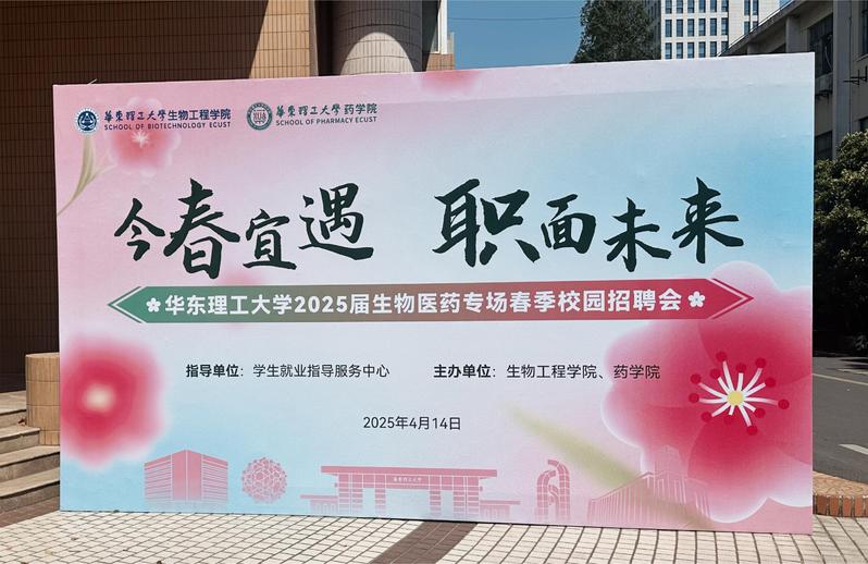 为落实教育部关于促进高校毕业生就业工作部署,全力助推2025届毕业生高质量就业,进一步深化校企交流,4月14日下午,华东理工大学生物工程学院与药学院在徐汇校区逸夫楼联合举办“今春宜遇 职面未来”2025年生物医药专场春季校园招聘会。