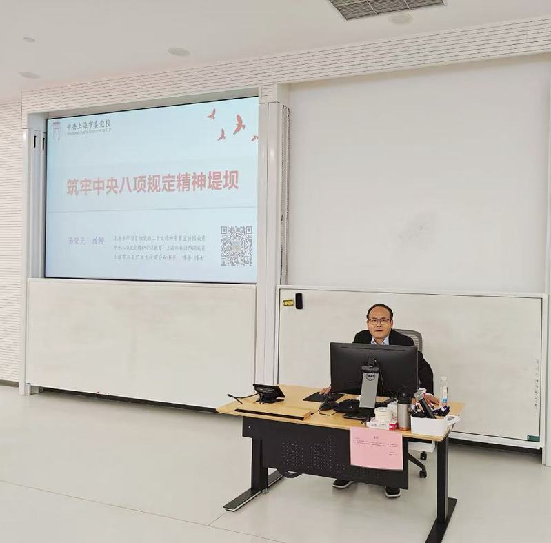 4月21日,药学院、体育学院邀请中共上海市委党校教授、上海市学习贯彻党的二十大精神专家宣讲团成员、深入贯彻中央八项规定精神学习教育上海市委讲师团成员、上海市马克思主义研究会秘书长汤荣光作题为“筑牢中央八项规定精神堤坝”的专题报告。学院全体教职工参加会议,会议由药学院党委书记倪炜主持,药学院、体育学院党政班子成员,教师党员共同参加学习。