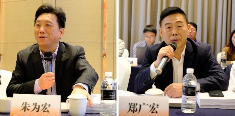 图片说明:中国科学院院士朱为宏(左)与上海市科学技术委员会二级巡视员郑广宏(右)致辞