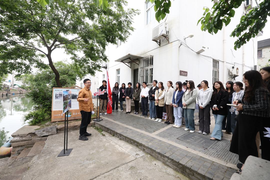 在华理社会工作站驻村研究生尹明慧带领下,研究生党员们走访求知弄文化站、文化大礼堂、江村集市等,沉浸式感受开弦弓村在城乡融合、乡村振兴道路上,以文化为核心、系统运营为支撑,推动人文经济共生共荣的蓬勃动力。