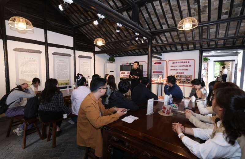 开弦弓村73岁的“农民教授”姚夫坤用带着乡音的普通话,给同学们讲述了从1936年到2002年费孝通26次到访开弦弓村的故事;在费孝通图书馆,专门研究乡村发展的社会与公共管理学院博士生佘国梁作为领读人结合新时代江村数字化乡村治理、生态农业发展等案例,阐发经典理论和江村实践对破解城乡融合发展、基层治理现代化等现实议题的启示价值;在开弦弓村新时代文明实践站,曾作为华理扶贫干部在云南省寻甸回族彝族自治县塘子街道塘子社区担任两年驻村第一书记的沈峰讲述了新时代乡村基层党组织如何以高质量党建引领乡村经济发展。