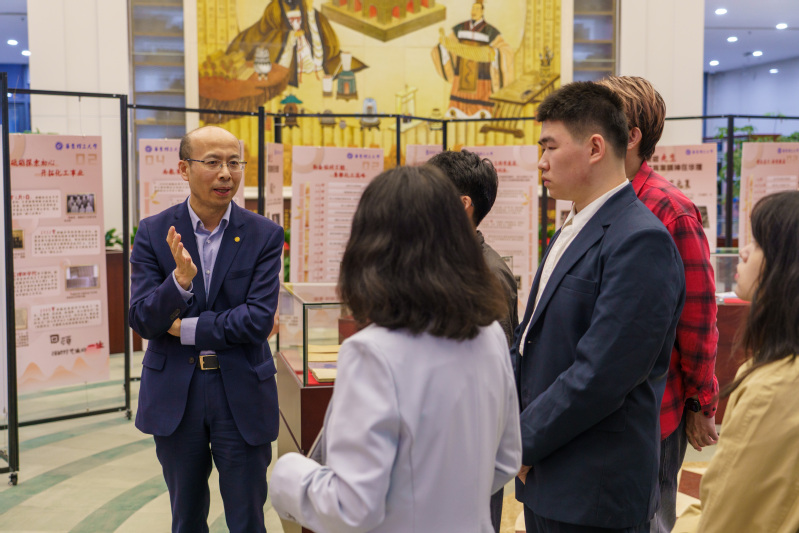 图片说明:轩福贞向同学们介绍“致敬先生——教育家精神在华理”特别展
