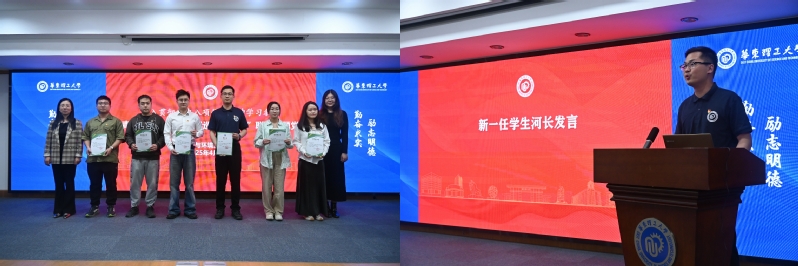 在青春河学生河长换届仪式上,校团委社会实践部部长吴佳蔚、资环学院曹娜为即将毕业的温贵棱等护河志愿者代表颁发证书,向新任学生河长颁发聘书,并交接“青春河志愿服务队”队旗。新任学生河长、汗水哲学研究生第一党支部书记黄钦威发言,表示将带领护河志愿者们创新“智慧巡河”模式,打造学科交叉“创新链”,培育全民护河“生力军”,建立科普激励“坐标系”,构建校地治理“朋友圈”,接续书写“水清岸绿景美”的生态答卷。