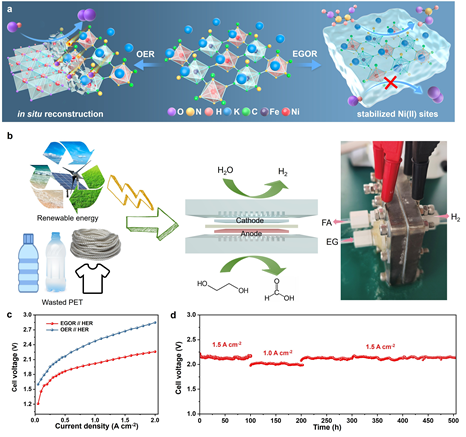 近日,国际知名学术期刊《自然—通讯》以“类普鲁士蓝中稳定镍(II)位点高效安培级乙二醇氧化”为题,在线报道了华东理工大学材料科学与工程学院清洁能源材料与器件团队在绿色氧化耦合电解水制氢领域的最新研究成果。