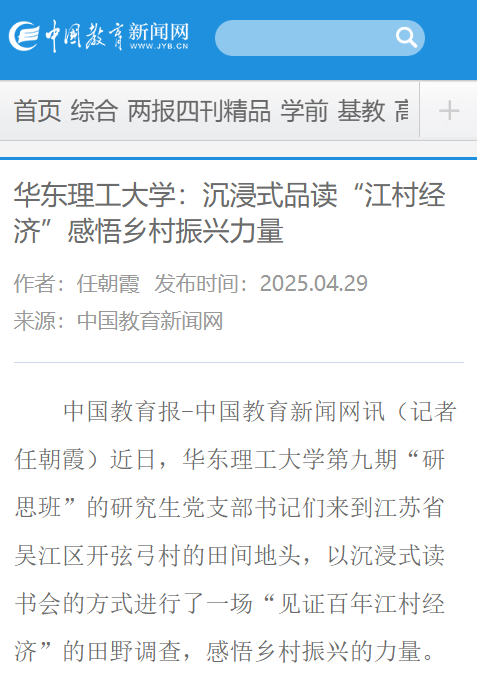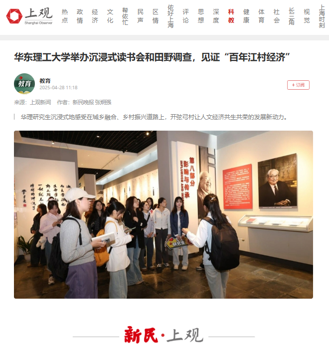 【中国教育新闻网】华东理工大学:沉浸式品读“江村经济”感悟乡村振兴力量