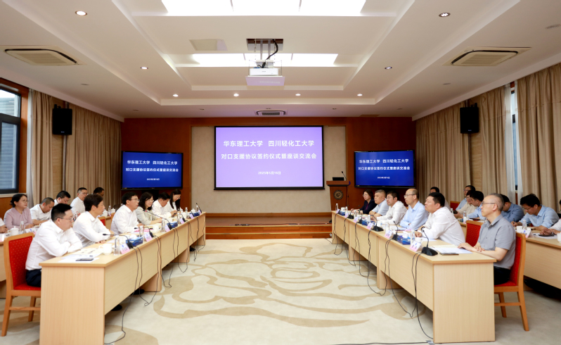 赵黎明、罗惠波代表双方签署了《华东理工大学对口支援四川轻化工大学协议》。根据协议约定的内容,华东理工大学将根据四川轻化工大学实际发展需要,在学科专业建设、师资队伍建设、教育教学、人才培养、科学研究、国内外合作与交流、干部队伍建设等方面提供支援指导帮助。座谈会上,与会人员就对口支援与合作的具体内容进行了充分交流、探讨。