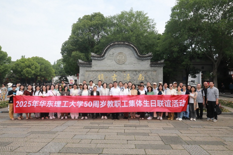 为凝聚学校高质量发展合力,加强对教职工的温暖和关爱,增强教职工的幸福感、获得感和归属感,5月17日,校工会、人事处共同组织开展了2025年华东理工大学50周岁教职工集体生日联谊活动。学校党委副书记沈海涛、副校长李涛出席活动。校工会副主席张攀和陈涛、人事处副处长冉博及部分学院领导、工会主席与50周岁教职工50余人前往中国历史文化名镇湖州南浔共庆集体生日,共话教育初心。校工会常务副主席张青主持了活动。