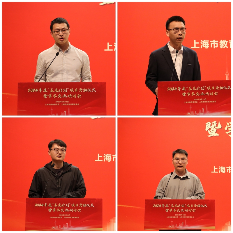 复旦大学柳钮滔、华东理工大学葛小虎、上海杉达学院卞学鹏、上海工艺美术职业学院周豪四位新入选的“晨光学者”代表发言,感谢市教委、市教育发展基金会为高校青年教师从事科研提供“第一桶金”“第一推动”,并结合各自的教学及科研成果,畅谈了自己在科研路上的修行与感悟。学者们表示,“晨光计划”不仅是青年学者梦想启航的助推器,也是助力高校高质量发展的加速器。“晨光学者”的称号既是荣誉也是鞭策,今后将依托“晨光计划”搭建的优质平台,从扎根基础研究的厚土到拓展跨学科协同创新的疆域,持续深耕科教融合育人实践,矢志走好科研自立自强之路。