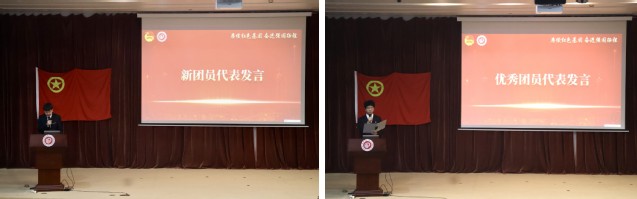 新团员代表王楷阳在发言中感谢团组织认可,并承诺将以实际行动践行团员使命,为团组织增光添彩。优秀团员代表陈瑞分享参与学生工作和社会实践的经验,号召青年学子以五四精神为指引,将个人成长融入时代发展,在团组织中发挥模范带头作用。