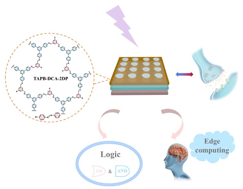 人工突触器件的开发对于神经形态计算的发展至关重要,因为它旨在使用忆阻器等电子组件来模拟大脑的突触可塑性。传统的电子和光电器件面临着高能耗和硬件冗余等缺陷,全光子调制器件因其超快运行、无电互连功率损耗和高带宽而引起了广泛关注。研究团队通过界面聚合法合成了一种大面积二维高分子薄膜TAPB-DCA-2DP。这种二维高分子包含偶氮苯基团,其暴露于紫外光和蓝光条件下会发生反式-顺式异构化,从而赋予该材料光响应特性。基于该二维有机薄膜材料的全光忆阻器成功模拟了神经突触的关键功能,如成对脉冲促进/抑制和长期增强/抑制等。此外,全光忆阻器有效地执行了光学逻辑门和ASCⅡ码解密,并成功集成到新型边缘计算系统中,用于导电玻璃的损伤检测。该系统准确地对各种类型的损坏进行了分类,在卷积运算期间以32个电导状态下实现了98.03%的识别准确率。相关研究成果以“All-optical synaptic devicesutilizing 2D polymer film for logic operations and integrated edge computing”为题发表于Cell Reports Physical Science上。化学学院博士研究生李金勇为论文第一作者,上海市智能感知与检测技术重点实验室张斌教授、胡越副教授和轩福贞教授为共同通讯作者。