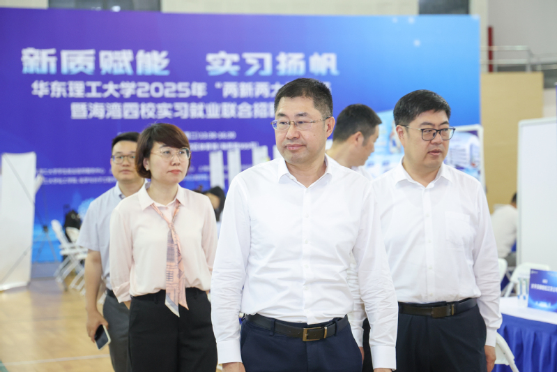 华东理工大学党委书记蒋传海来到招聘会现场,与参会单位和学生亲切交流,聆听用人单位对我校人才培养、就业工作的意见建议,询问关怀同学们的实习就业意向与求职进展。党委副书记沈海涛陪同出席活动。