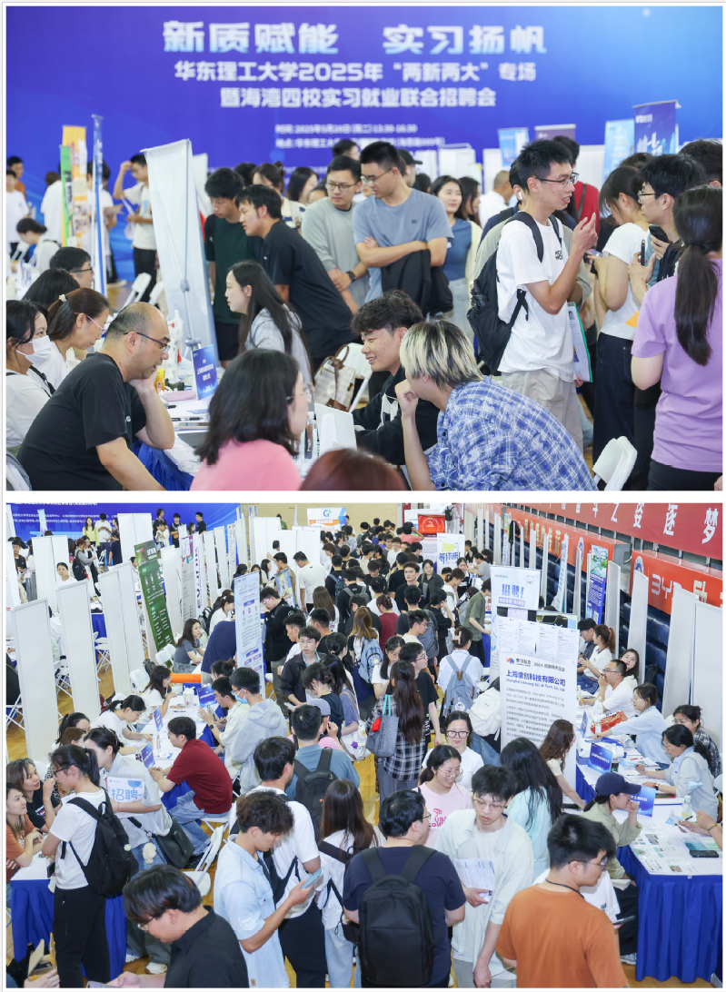 为落实教育部、上海市关于开展2025届高校毕业生就业“百日冲刺”行动的相关要求,搭建人才供需对接桥梁,服务新质生产力发展,促进学生高质量充分就业、实习,为奉贤高质量发展聚势赋能,5月20日下午,学校联合上海师范大学、上海应用技术大学、上海旅游高等专科学校等在奉高校,在我校奉贤校区体育馆举办了2025年“两新两大”专场暨海湾四校实习就业联合招聘会。