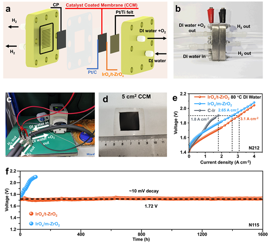 低铱阳极催化剂(IrOx/t-ZrO2)膜电极及其质子交换膜电解水制氢性能