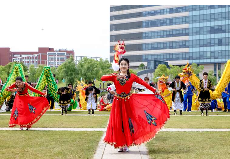 记者注意到,今年的龙舟赛Buff叠满。既有颇具民俗风情的“舞龙舞狮”表演,又有少数民族学生表演的民族舞蹈,让留学生们感受到了中国文化的多样性。随着发令声响,一条条龙舟如离弦之箭划破碧波,船桨翻飞间水花四溅,鼓声、呐喊声与岸边的欢呼声交织成一片。