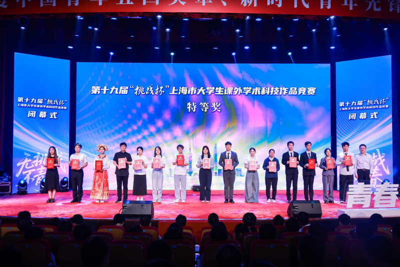 5月23-25日,第十九届“挑战杯”上海市大学生课外学术科技作品竞赛在上海工程技术大学举行,我校以特等奖 4 项、一等奖 5 项、二等奖 1 项、三等奖 4 项的优异成绩位列上海市第三,再次蝉联“优胜杯”。此次比赛中,我校特等奖作品首次全面涵盖自然科学类学术论文、哲学社会科学类社会调查报告、科技发明制作等全部三大类赛道。
