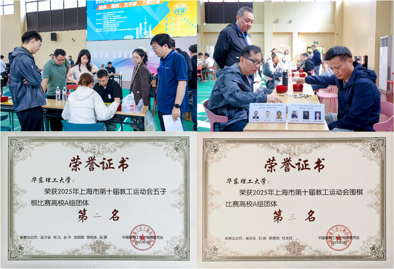 经过一整天的激烈角逐,我校教工代表队在众多强劲对手中脱颖而出,斩获高校A组五子棋亚军、围棋季军的佳绩,为学校赢得了荣誉,充分展现了华理教工在智力竞技领域的风采与实力。