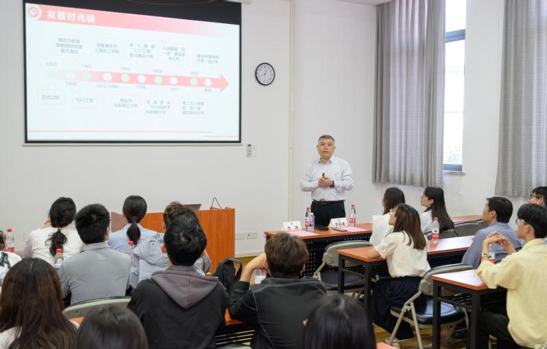 李涛以“校史中的爱国情”为题讲授专题党课。他回顾学校与国家发展同频共振的历程并指出,学校始终将“国之大者”镌刻于发展脉络,勉励青年党员锚定“强国一代”的时代坐标,将爱国情、强国志转化为报国行,以青春之力续写华理辉煌。