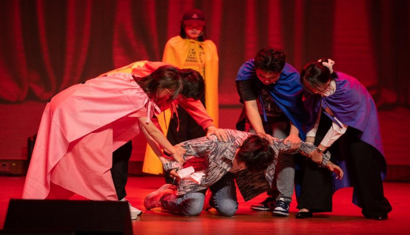 一直以来,心理情景剧是我校教育教学、实践活动、咨询服务、预防干预、平台保障“五位一体”的心理健康教育工作格局的重要组成部分,以此为载体积极进行美育润心实践,深化“朋辈”心理健康教育活动内涵,促进心理健康教育贯穿育人全过程。此次选送的参演剧目《时空剧场的五重奏》,演绎了关于一场撕碎标签、重构自我的心灵时空故事,展现了主角内心蜕变、成长的发展过程。该剧采用角色呈现、多维替身、附加现实、光明投射、时空转换等多种心理情景剧技术,生动演绎主角的5种不同状态带来的内心冲突与挣扎的心路历程。剧目由心理咨询中心李永慧、刘世博,化学与分子工程学院赵思媛担任指导教师,由商学院刘星语、化学与分子工程学院王彦开、机械与动力工程学院刘柏然等9个学院的12名学生组成了全学生班底的创作团队,自编自导自演,从剧本创作、演员选拔到组织排演,历时近3个月。剧组成员克服重重困难,牺牲自己业余休息时间排练剧目,精益求精。全剧兼具专业性、技术性与艺术性,演员们表演流畅自然、恰如其分,情感真挚,感染力强,呈现了精彩绝伦的舞台效果。