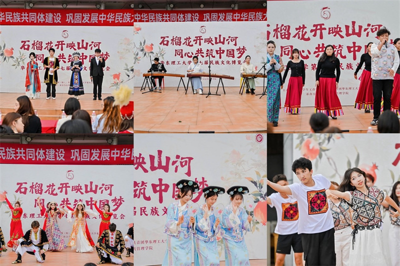 近日,“石榴花开映山河,同心共筑中国梦”华东理工大学第七届民族文化博览会在奉贤校区风檐广场圆满举行。来自全校不同民族的师生共同展示了一幅中华民族一家亲的和美画卷,多姿多彩的民族文化、动人心弦的民族歌舞、精美华丽的民族服饰以及琳琅满目的民族美食吸引了广大师生驻足。