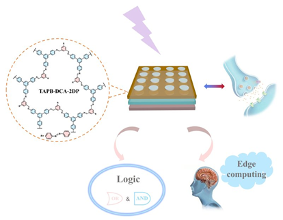 人工突触器件的开发对于神经形态计算的发展至关重要,因为它旨在使用忆阻器等电子组件来模拟大脑的突触可塑性。传统的电子和光电器件面临着高能耗和硬件冗余等缺陷,全光子调制器件因其超快运行、无电互连功率损耗和高带宽而引起了广泛关注。研究团队通过界面聚合法合成了一种大面积二维高分子薄膜TAPB-DCA-2DP。这种二维高分子包含偶氮苯基团,其暴露于紫外光和蓝光条件下会发生反式-顺式异构化,从而赋予该材料光响应特性。基于该二维有机薄膜材料的全光忆阻器成功模拟了神经突触的关键功能,如成对脉冲促进/抑制和长期增强/抑制等。此外,全光忆阻器有效地执行了光学逻辑门和ASCⅡ码解密,并成功集成到新型边缘计算系统中,用于导电玻璃的损伤检测。该系统准确地对各种类型的损坏进行了分类,在卷积运算期间以32个电导状态下实现了98.03%的识别准确率。相关研究成果发表于Cell Reports Physical Science上。华东理工大学博士研究生李金勇为论文第一作者,上海市智能感知与检测技术重点实验室张斌教授、胡越副教授和轩福贞教授为共同通讯作者。