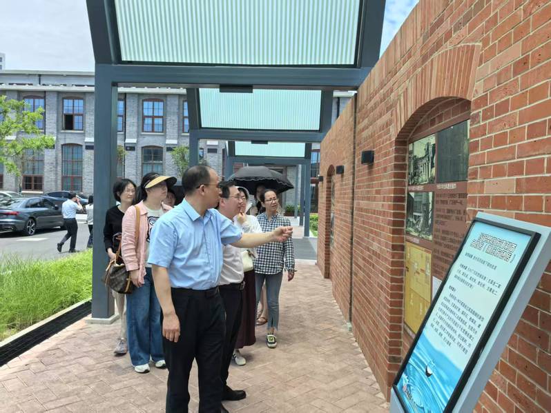 图片说明:沿着总书记足迹,一行人考察杨浦滨江“水厂栈桥”段
