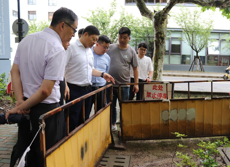 检查组一行重点查看了校内低洼易涝地段、排水管网、河道泵站、绿化设施及防汛防台物资储备等,详细排查积水、高空坠物、树木倾倒等风险隐患。