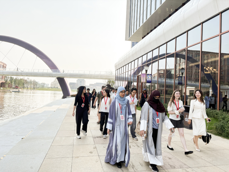 5月30日,国际教育学院组织来自瑞典、俄罗斯、沙特阿拉伯、印度尼西亚等6个国家的13名国际学生走进华为全球最大研发基地——练秋湖研发中心,深度体验中国科技创新成果,近距离感受科技赋能未来的无限可能。此次活动旨在通过实地参访,让国际学生直观了解中国科技企业的创新实力,促进跨文化交流与合作,搭建科技与人文交融的国际传播桥梁。