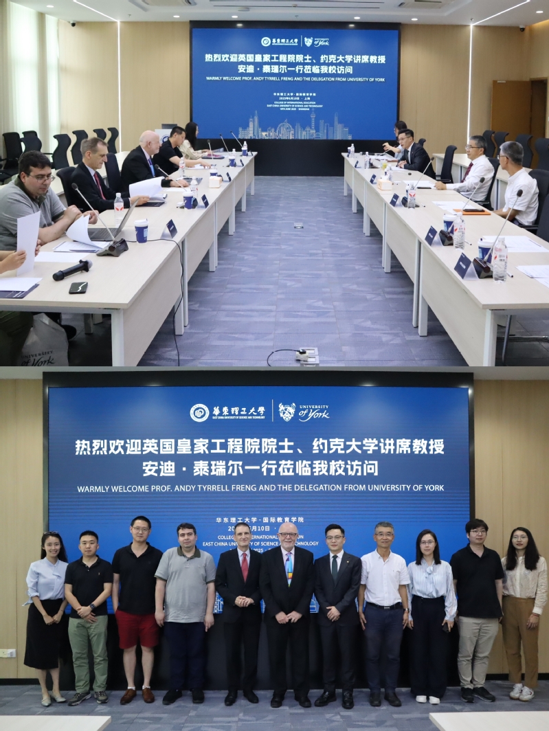 6月10日,英国皇家工程院院士安迪·泰瑞尔教授率约克大学代表团访问华东理工大学。代表团成员包括物理科学与工程技术学院院长斯蒂芬·史密斯教授、机器人学助理教授朱吉鸿博士、哈迪·埃尔·达乌博士及中国办公室代表冯海玥女士。我校副校长阎海峰会见了来宾,信息科学与工程学院党委书记侍洪波、国际教育学院院长李霄鹏、信息科学与工程学院教授卢静宜、顾震等陪同出席。