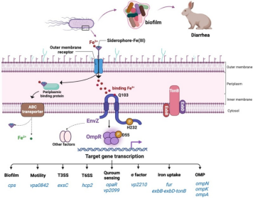 动物感染实验为这一发现提供了有力证据。在新生兔感染模型中,研究人员观察到富铁环境显著促进了副溶血弧菌的肠道定植和生物被膜形成,而使用铁螯合剂处理可明显减轻组织病理损伤。这些发现不仅揭示了铁离子感知机制在细菌致病过程中的核心作用,更为抗感染治疗提供了新的干预靶点。