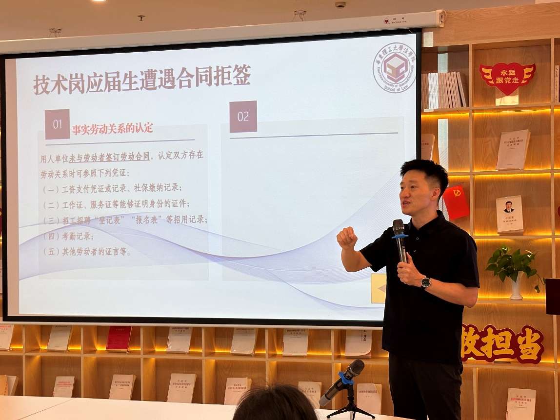 现场听讲座的多是正在求职的毕业生。他们表示,求职时碰到的法律问题不少,但往往只是去翻小某书,或者问问学长学姐。“粟老师的讲座既有案例分享与法条解读,还有很实用的操作指导,尤其注意结合理工科高校毕业生的就业方向与岗位,对我们就业帮助很大。”