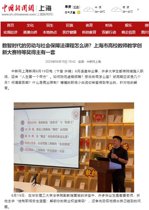 【中国新闻网】数智时代的劳动与社会保障法课程怎么讲?上海市高校教师教学创新大赛特等奖得主有一套