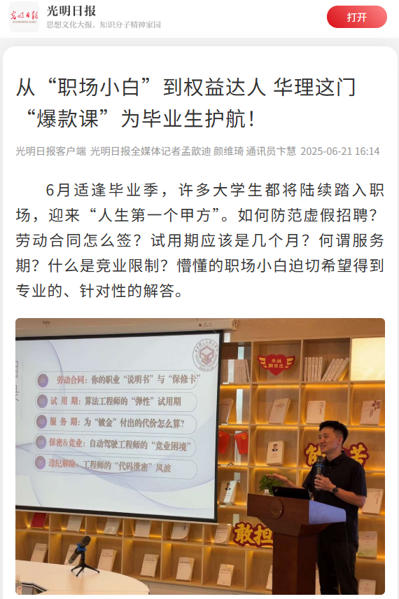 【光明日报客户端】从“职场小白”到权益达人 华理这门“爆款课”为毕业生护航!