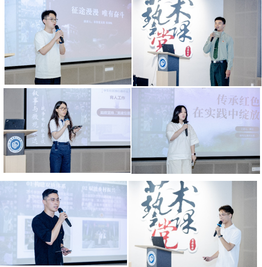 孙逸臻(研究生第三党支部发展对象)探讨了新时代学生社区中的红色基因,通过艺术生活实验室的实践,展现了红色教育的创新路径。