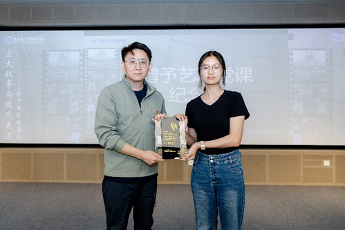 活动尾声,学生代表周佳宁向张珂赠送了艺术党课纪念牌并致谢。