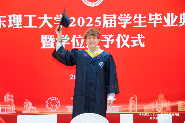 凤凰花开风华茂,莘莘学子启航时。6月24日,华东理工大学举行2025届学生毕业典礼暨学位授予仪式。典礼采用了主会场与分会场同步直播的方式,8000余名本、硕、博毕业生参加毕业典礼,共同见证人生新征程。本报去年“留在上海②”的报道主角、意大利留学生马浩也是毕业生中的一员,他站上了毕业典礼发言席代表留学生发言。发言中,他提及了他的梦想——想做新时代的“马可·波罗”。